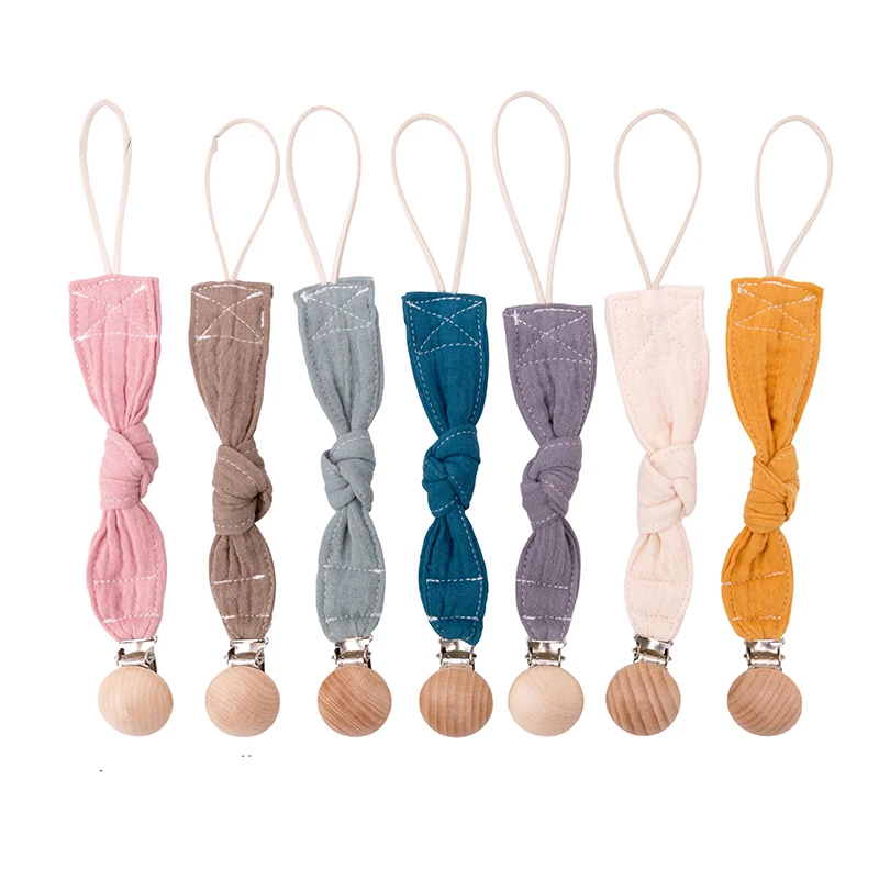 Name: Cadena de chupete de algodón para bebé recién nacido, Clip de chupete personalizado, soporte de madera para pezones, 1 unidad
